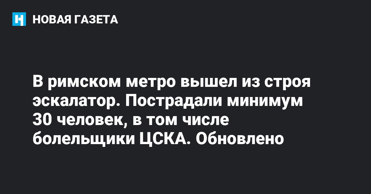 Из-за сбоя в работе эскалатора на станции метро «Республика» в Риме пострадали 20 человек, большинство из них футбольные фанаты российской команды ЦСКА. Об этом сообщила итальянская газета La Repubblica.