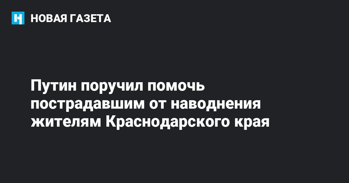 Президент России Владимир Путин поручил губернатору Краснодарского края Вениамину Кондратьеву и главе МЧС Евгению Зиничеву помочь пострадавшим от наводнения на Кубани людям, говорится на сайте главы государства.