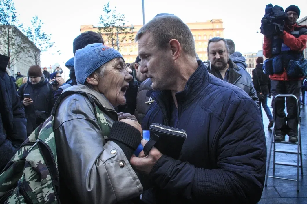Народные сходы и протестные акции у здания ФСБ на Лубянке случаются нечасто, особенно последнее время. Сакральное учреждение и сакральное место, недаром же именно здесь устроил свою акцию с поджогом двери Павленский. Те, кто шел сюда поддержать ребят, сидящих по делам «Нового величия» и «Сети», уверены были: предстоят жесткие задержания, а многие испугались и не пошли.