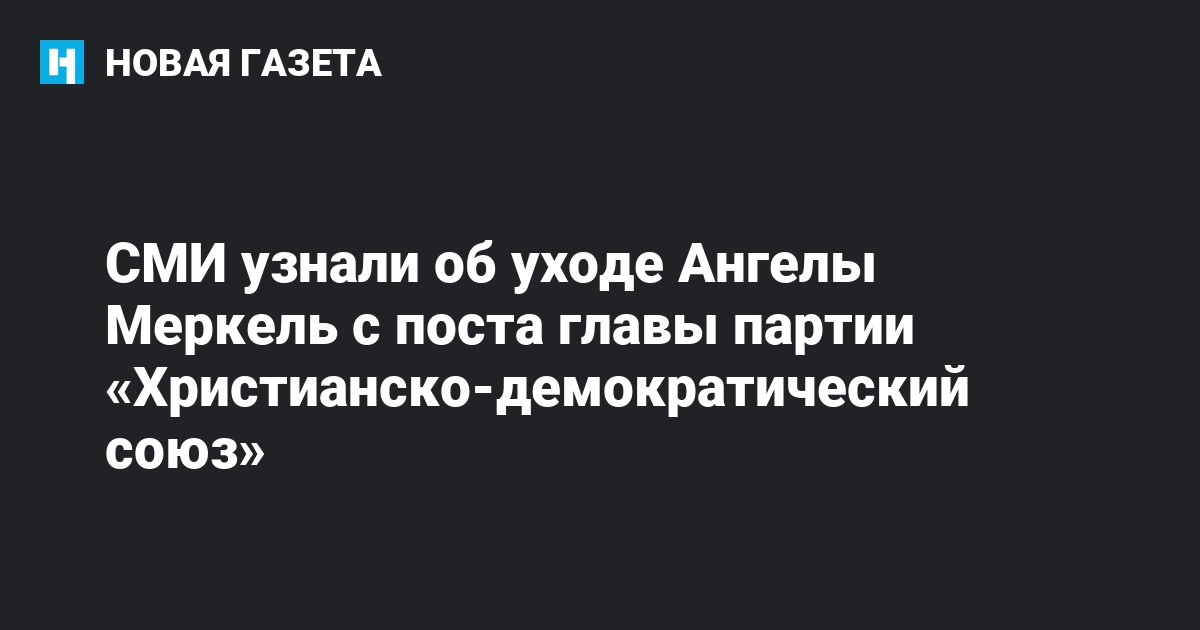 Канцлер Германии Ангела Меркель не будет переизбираться на должность главы партии «Христианско-демократический союз» (ХДС, CDU) на съезде партии в декабре, сообщают агентства Reuters, Bloomberg и «Би-би-си» со ссылкой на неназванные источники.