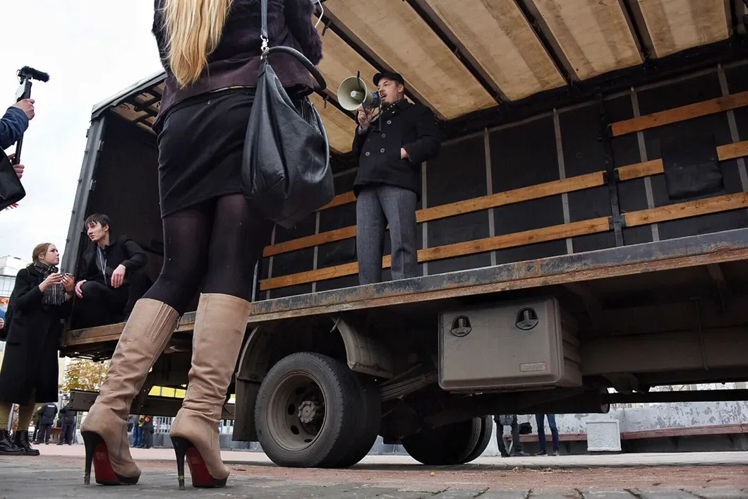 — Мы здоровые силы нашего города и нашей нации. Пусть нас мало, пусть нас очень мало, но мы есть то самое зерно, из которого вырастет русская политическая нации, — доносится со сцены.