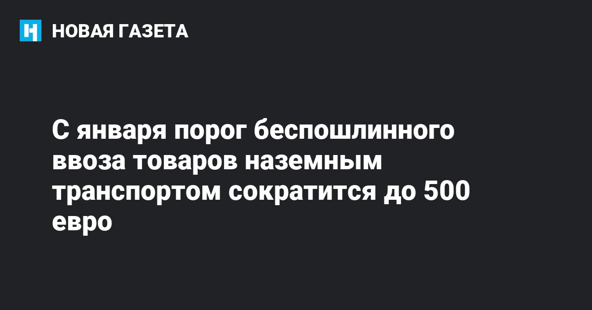 С 1 января порог беспошлинного ввоза в Россию наземным транспортом товаров для личного пользования снизится с 1,5 тысяч до 500 евро. Об этом говорится в решении совета Евразийского экономического союза (ЕАЭС), которое с российской стороны подписал министр финансов Антон Силуанов. При этом порог для ввоза воздушным транспортом для россиян остается прежним — 10 тысяч евро.
