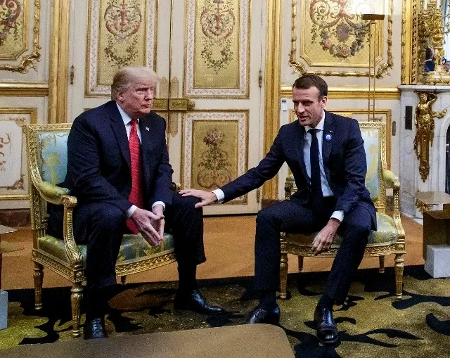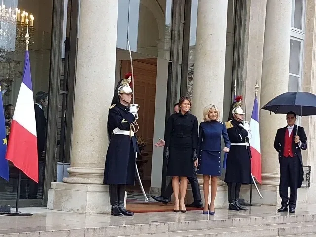 Встреча началась в напряженной обстановке, так как накануне вечером, едва приземлившись в парижском аэропорту Орли, президент США опубликовал твит с жесткой критикой в адрес Эмманюэля Макрона, назвав «оскорбительным» его заявление о необходимости создания «настоящей европейской армии» для того, чтобы «защитить нас от Китая, России («угрожающей нам на наших границах») и даже от Соединенных Штатов Америки».