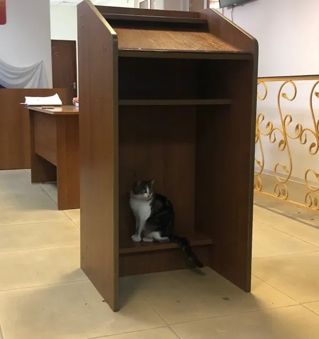 Кроме котика в зал прямо во время заседания постоянно заходят и выходят работники суда — помещение проходное, а им надо в смежный кабинет. Но что делать, собственного здания у Шалинского городского суда нет, он квартирует в скромном бизнес-центре. Но зато в пятидесятитысячном Шали есть внушительный гостиничный комплекс «Шали-Сити», по мраморным коридорам которого гуляет эхо, а также строится огромная, воздушная, словно срисованная из сказки мечеть.