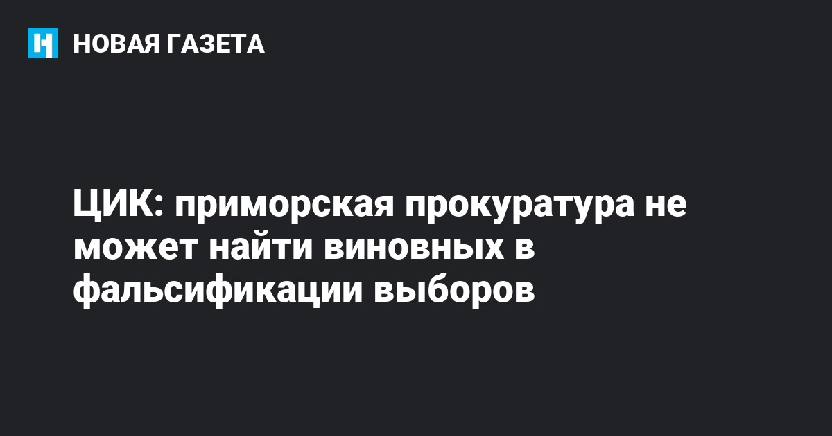 Центральная избирательная комиссия (ЦИК) направила письмо генеральному прокурору Юрию Чайке с просьбой взять ситуацию с рассмотрением нарушений на сентябрьских выборах в Приморье под личный контроль. Письмо с этой информацией под подписью председателя ЦИК Эллы Памфиловой пришло в ответ на запрос «Новой газеты» о том, какие меры были приняты после признания результатов второго тура губернаторских выборов в Приморье недействительными.