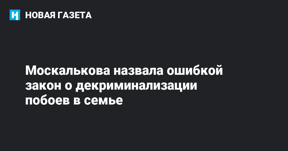 «Я считаю, что декриминализация — ошибка, что нужно принимать закон о противодействии насилию в семье <…> Cегодня человек, который находится в семейном пространстве, не защищен от доминирования члена семьи, которое наносит ущерб, но не переходит грань преступления», — приводит РИА Новости слова Москальковой.