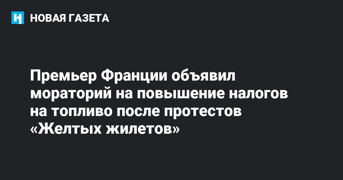 Премьер-министр Франции Эдуар Филипп объявил полугодовой мораторий на повышение налогов на топливо, сообщают Associated Press и Euronews в твиттере.