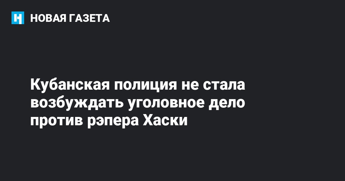 Управление МВД по Краснодару не нашло состава преступления в действиях рэпера Дмитрия Кузнецова (Хаски), устроившего импровизированный концерт на крыше автомобиля, и вынесло постановление об отказе в возбуждении уголовного дела. Об этом в фейсбуке сообщил адвокат артиста Алексей Аванесян.