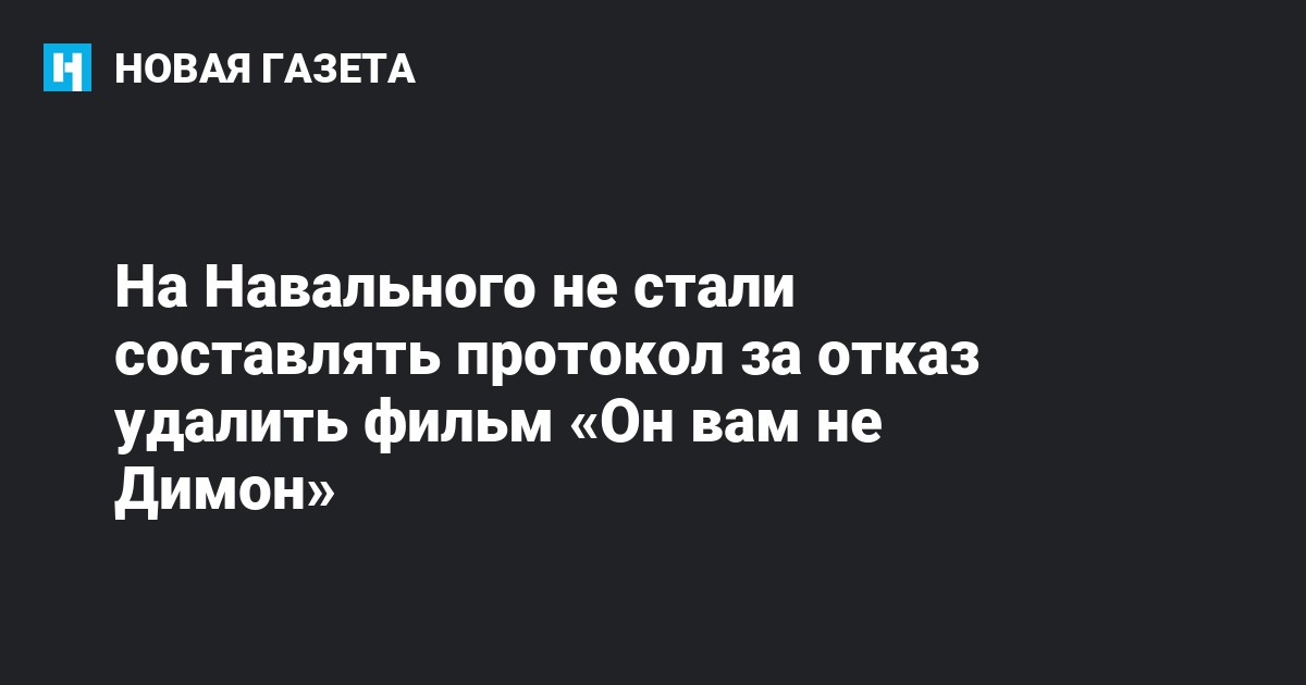 Приставы не стали составлять протоколы об административном нарушении на политика Алексея Навального за отказ удалить из интернета фильм «Он вам не Димон» и информацию о бизнесмене Сергее Михайлове по решению суда. Об этом оппозиционер сообщил в твиттере.