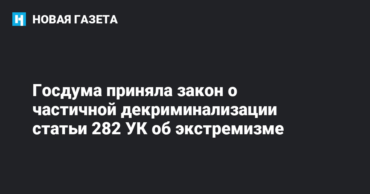 В разговоре с «Новой» эксперты отмечали, что частичной декриминализации статьи 282 не достаточно, поскольку за репосты в соцсетях пользователи привлекаются также по статьям о публичных призывах к экстремизму (ст. 280 УК) и об оскорблении чувств верующих (ст. 148 УК). Согласно статистике центра «Сова», по 282-ой статье в прошлом году осудили 571 человека, а по 280-ой — 170.