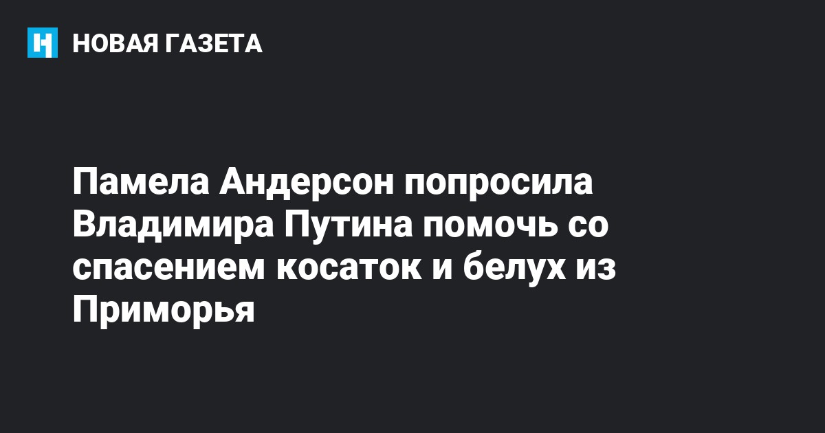 Зоозащитница Памела Андерсон попросила российского президента Владимира Путина остановить вылов косаток и белух, которых отправляют на продажу в китайские океанариумы. Об этом говорится на сайте фонда Памелы Андерсон.