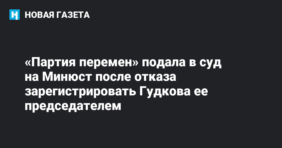 «Партия перемен» подала в суд на Министерство юстиции России из-за отказа зарегистрировать политика Дмитрия Гудкова ее новым председателем. Об этом «МБХ медиа» рассказал его пресс-секретарь Алексей Обухов.