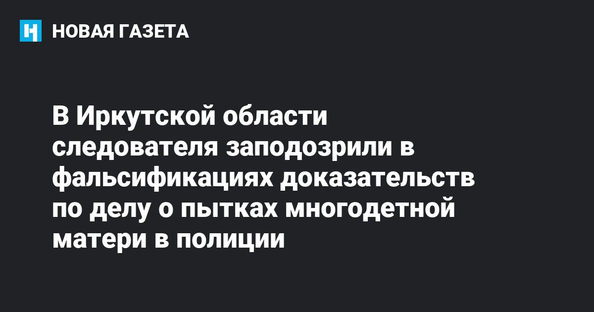 В городе Усолье-Сибирское в Иркутской области против следователя Сергея Лысых возбудили уголовное дело о фальсификациях доказательств (ст. 303 УК) по делу о пытках многодетной матери Марины Рузаевой в отделе полиции в 2016 году. Об этом сообщает фонд «Общественный вердикт» со ссылкой на ее мужа.