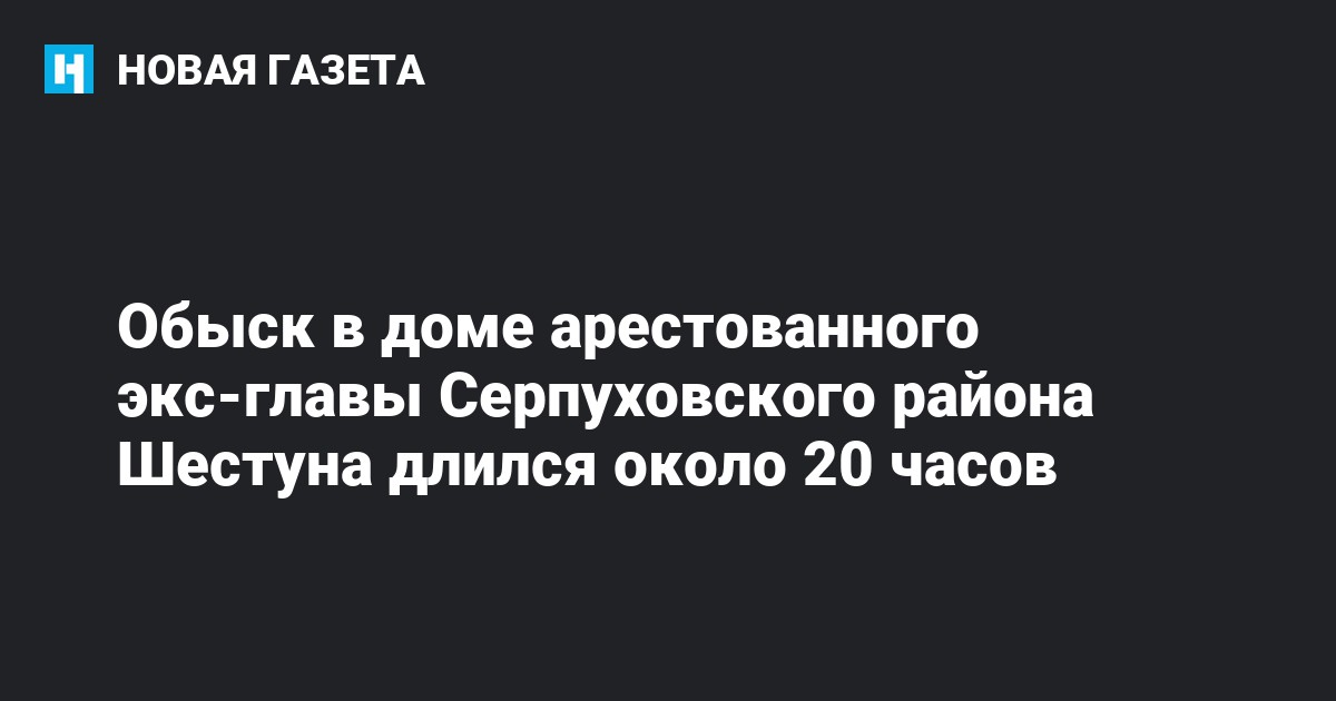 Обыск в доме бывшего главы Серпуховского района Александра Шестуна, обвиняемого в превышении должностных полномочий, шел около 20 часов. Об этом «Новой газете» рассказала жена Шестуна Юлия.