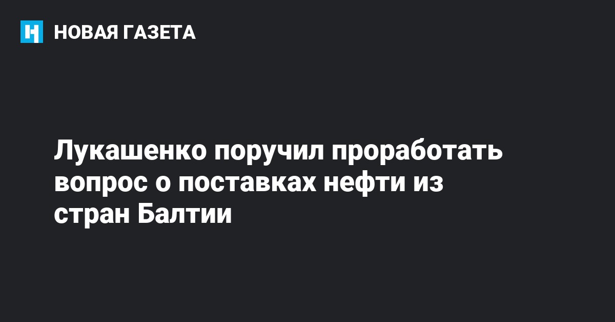 Президент Беларуси Александр Лукашенко поручил правительству страны заняться вопросом о поставках нефти из стран Балтии, передает БелТА.