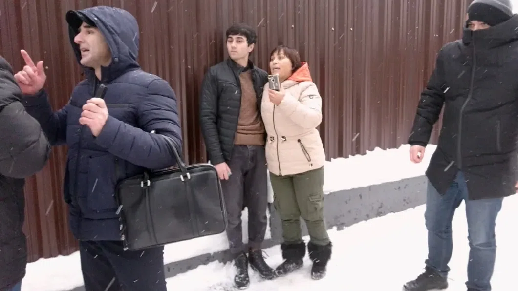 Люди не представляются, некоторые не показывают лиц, отталкивают мать, игнорируют адвоката. При помощи сотрудников полиции, которые тоже не представились, запихивают Камалова в машину и увозят в неизвестном направлении.