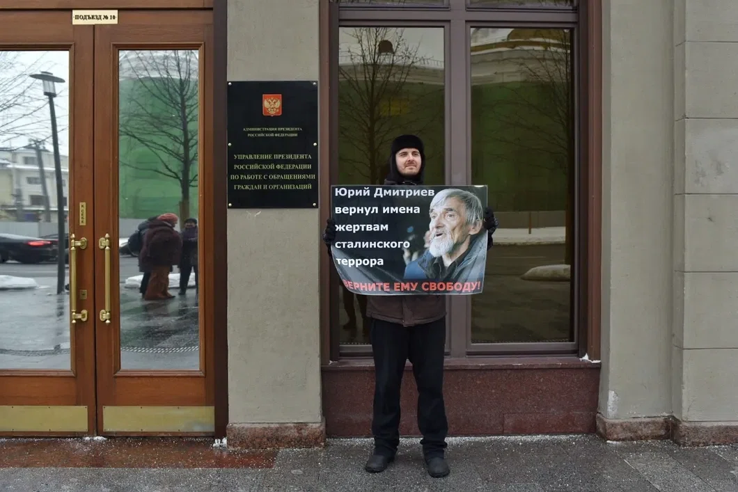 Собравшиеся сегодня у приемной АП люди — тоже историки, но и переводчики, и менеджеры — пришли поздравить Дмитриева с днем рождения. С плакатом, на котором требование освободить Юрия Алексеевича, они провели серию одиночных пикетов. И передали несколько слов в его поддержку.