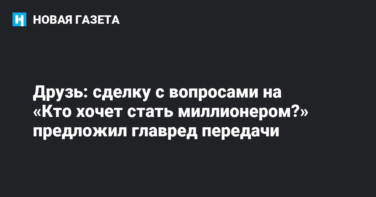 Магистр игры «Что? Где? Когда?» (ЧГК) Александр Друзь заявил, что сделку с вопросами программы «Кто хочет стать миллионером?» предложил не он, а сам главный редактор передачи Илья Бер. Об этом знаток ЧГК рассказал РБК.