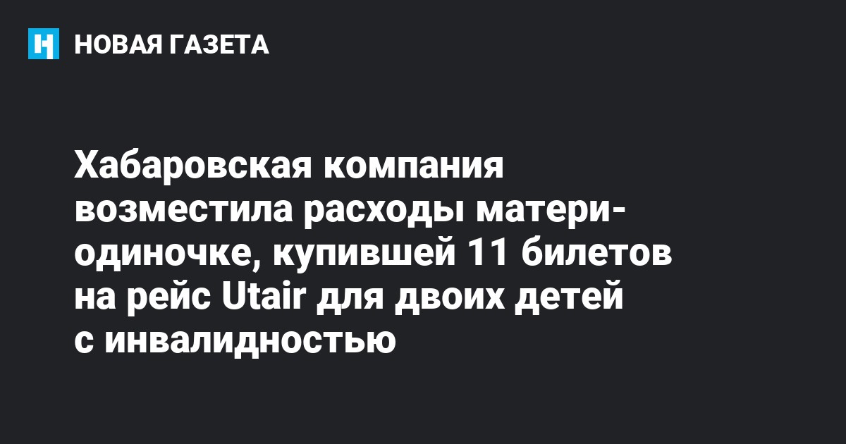Одна из хабаровских компаний полностью возместила деньги матери-одиночке Наталье Загуменной, которые она потратила на покупку 11 авиабилетов для своих двоих детей с инвалидностью. Об этом рассказала Интерфаксу председатель Хабаровского отделения «Российского детского фонда» Елена Суркова.