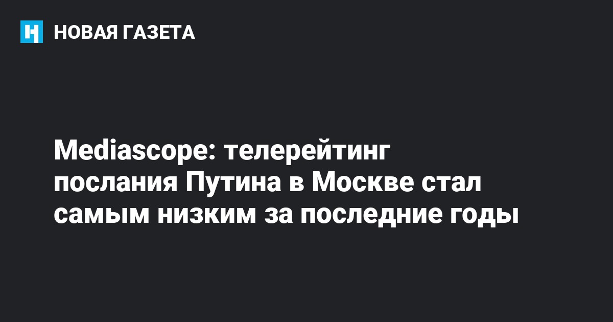 Издание отмечает, что послание транслировалось в прямом эфире на пяти каналах: на «Первом», «России 1», «России 24», «Москве 24» и «360». Согласно данным Mediascope, его посмотрели 5,9% москвичей, это примерно 0,87 млн человек и 39% жителей столицы, которые в этом время смотрели телевизор.