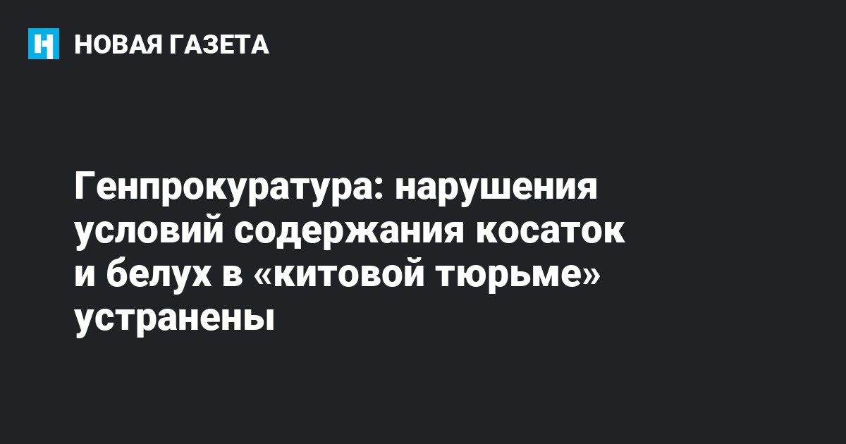 В Генеральной прокуратуре заявили, что нарушения условий содержания косаток и белух в центре адаптации в бухте в Приморском крае, которую называют также «китовой тюрьмой», устранены. Об этом сообщает Интерфакс со ссылкой на официального представителя надзорного ведомства Александра Куренного.