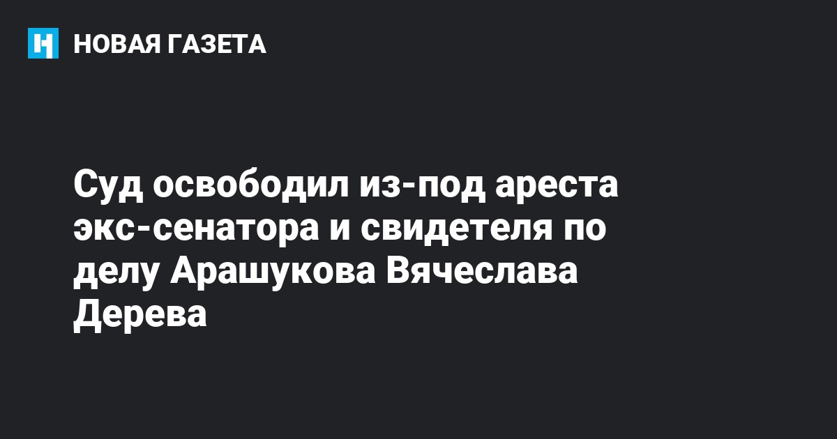 Мосгорсуд освободил из-под ареста бывшего сенатора от Карачаево-Черкесии Вячеслава Дерева, который проходит свидетелем со стороны обвинения по делу сенатора Рауфа Арашукова. Об этом сообщил РБК адвокат сенатора Руслан Коблев.