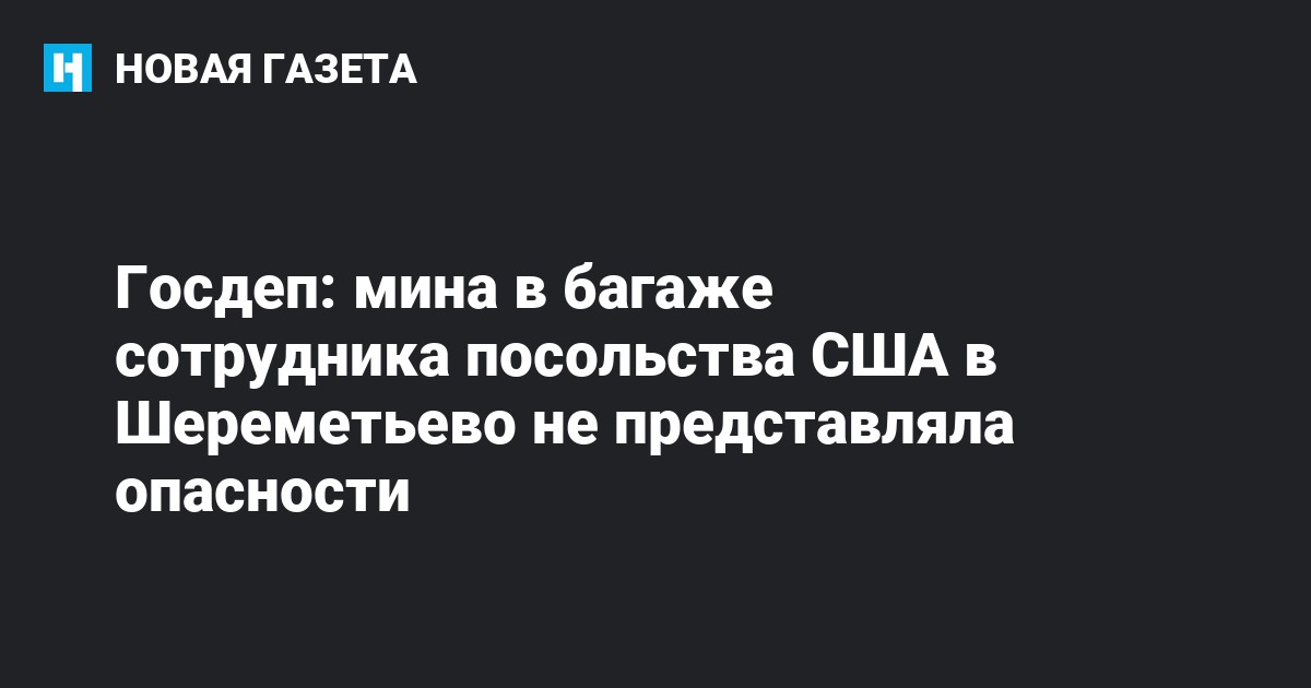 Власти США знают о том, что накануне у сотрудника американского посольства изъяли мину в аэропорту Шереметьево, и заявили, что она не представляла опасности для окружающих. Об этом сообщает ТАСС со ссылкой на представителя Госдепартамента США.