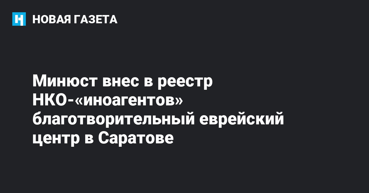 Министерство юстиции России внесло в реестр некоммерческих организаций (НКО), выполняющих функции «иностранного агента», саратовский еврейский благотворительный центр «Хасдей Ерушалаим» (Милосердие).