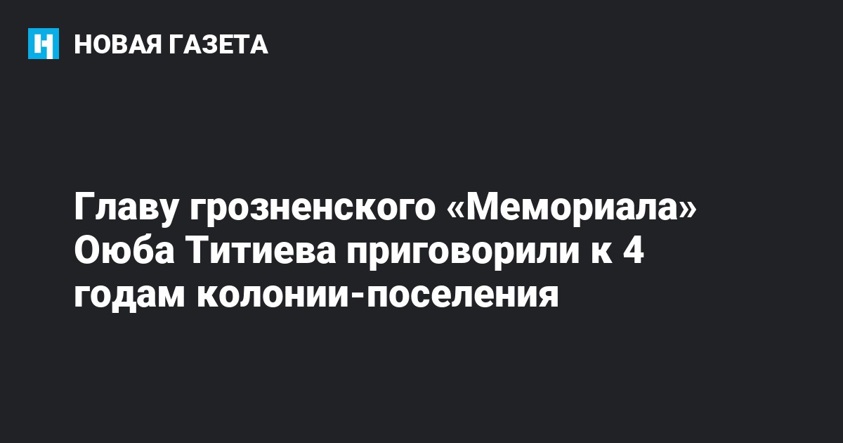 Шалинский городской суд Чечни приговорил руководителя грозненского отделения правозащитного центра «Мемориал» Оюба Титиева к 4 годам колонии-поселения по делу о хранении наркотиков в крупном размере (ч. 2 ст. 228 УК). Об этом сообщает корреспондент «Новой газеты» из зала суда. Оглашение приговора заняло более 8 часов.