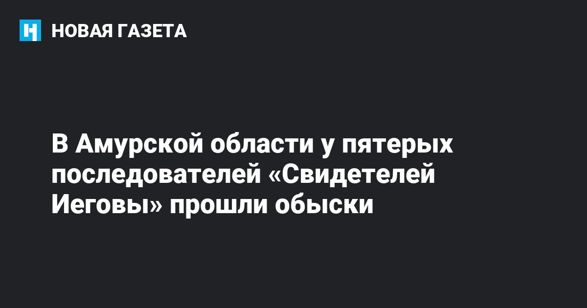 В городе Зея Амурской области прошли обыски в домах пяти «Свидетелей Иеговы» (запрещенная в России экстремистская организация). Об этом сообщается на сайте религиозного объединения в России.