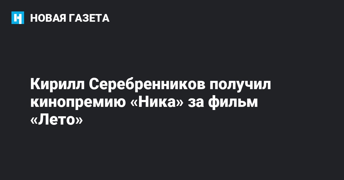 Режиссер Кирилл Серебренников получил кинематографическую премию «Ника» в номинации «Лучшая режиссерская работа» за фильм «Лето». Об этом сообщается на сайте премии.