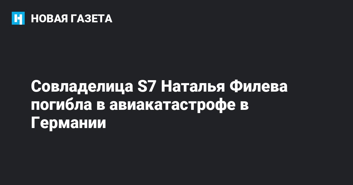 В Германии разбился легкомоторный самолет, на борту которого находилась совладелица S7 Наталья Филева. Об этом сообщают «Ведомости» со ссылкой на пресс-службу авиакомпании.