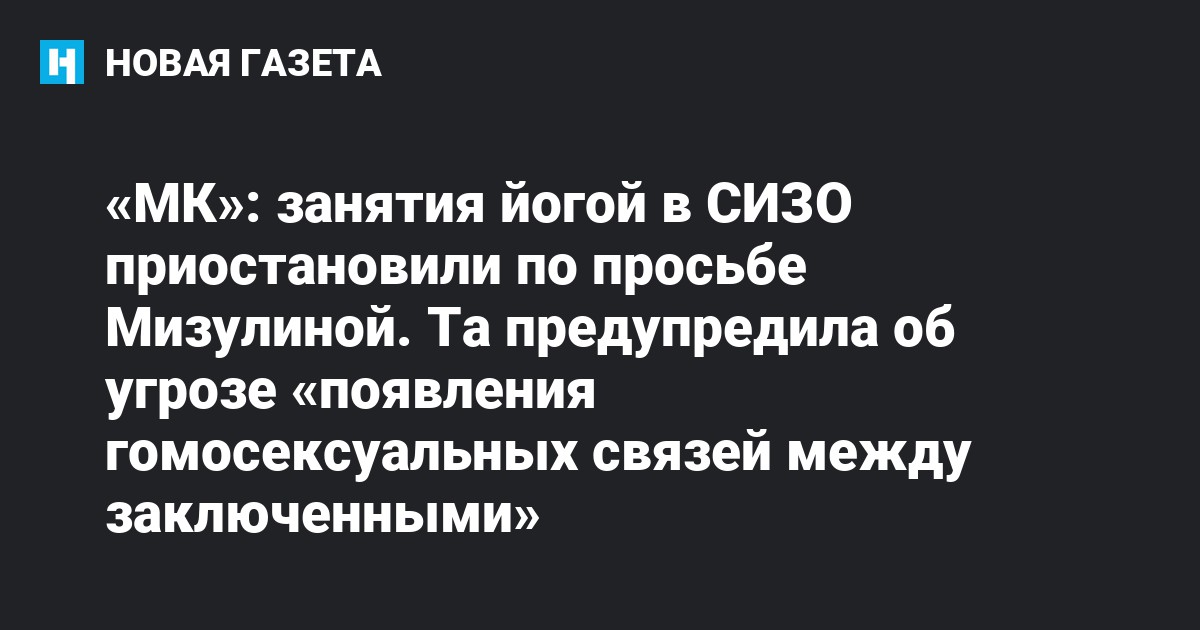 Генпрокуратура начала проверку занятий йогой в московских СИЗО после обращения сенатора Елены Мизулиной, пишет «Московский комсомолец».