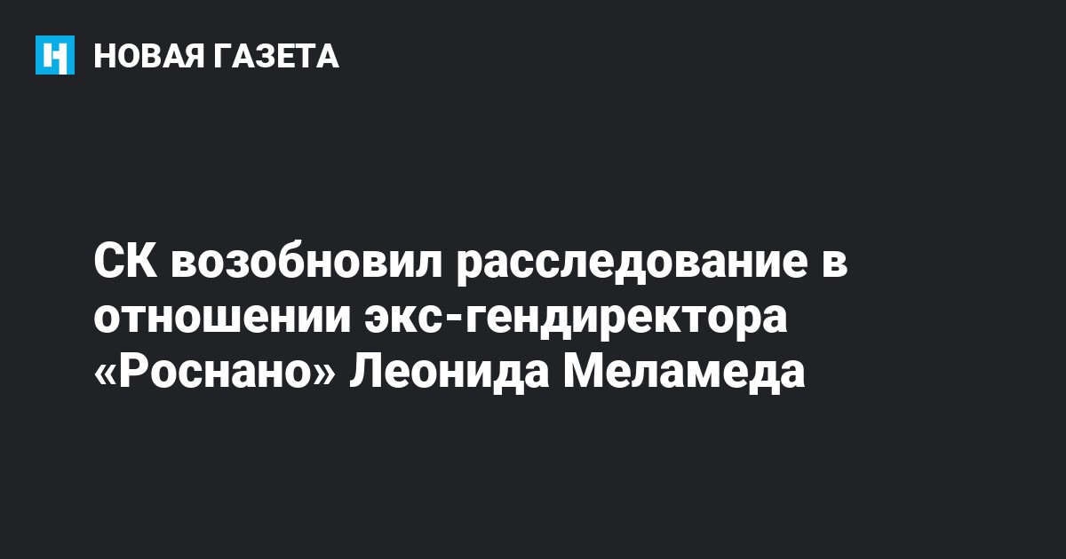 Следственный комитет России (СКР) возобновил расследование уголовного дела в отношении бывшего гендиректора «Роснано» Леонида Меламеда, которому инкриминируется растрата свыше 220 млн руб. Об этом сообщает «Коммерсант» со ссылкой на адвоката Александра Асниса, представляющего интересы «Роснано».