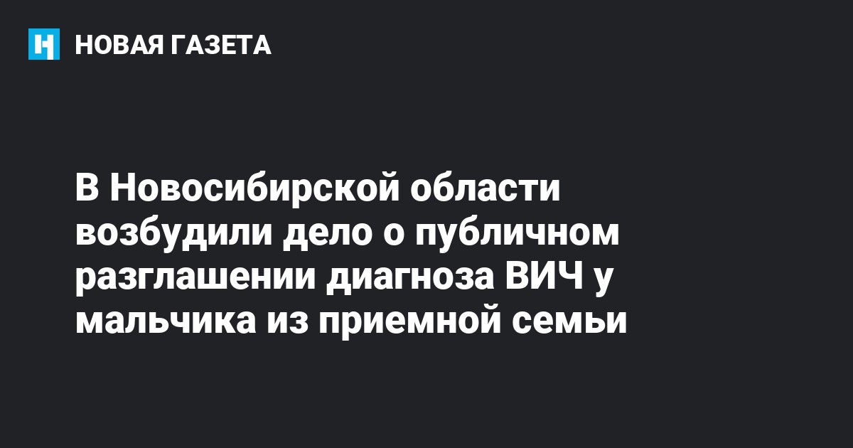 Следственный комитет (СК) по Новосибирской области возбудил уголовное дело о публичном разглашении диагноза ВИЧ у 7-летнего мальчика из приемной семьи, сообщается на сайте ведомства.