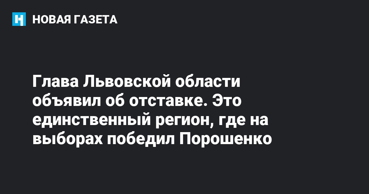 Согласно данным Центральной избирательной комиссии (ЦИК) Украины, Львовская область — единственная, где победил действующий президент Петр Порошенко. После обработки 97% бюллетеней, он набрал 62,8% голосов избирателей.