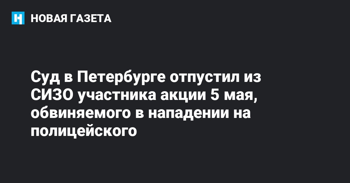 Дзержинский районный суда Санкт-Петербурга изменил меру пресечения с ареста на подписку о невыезде Михаилу Цакунову, обвиняемому в нападении на полицейского (ч.2 ст.318 УК) на акции 5 мая 2018 года. Об этом сообщает «Правозащита Открытки».