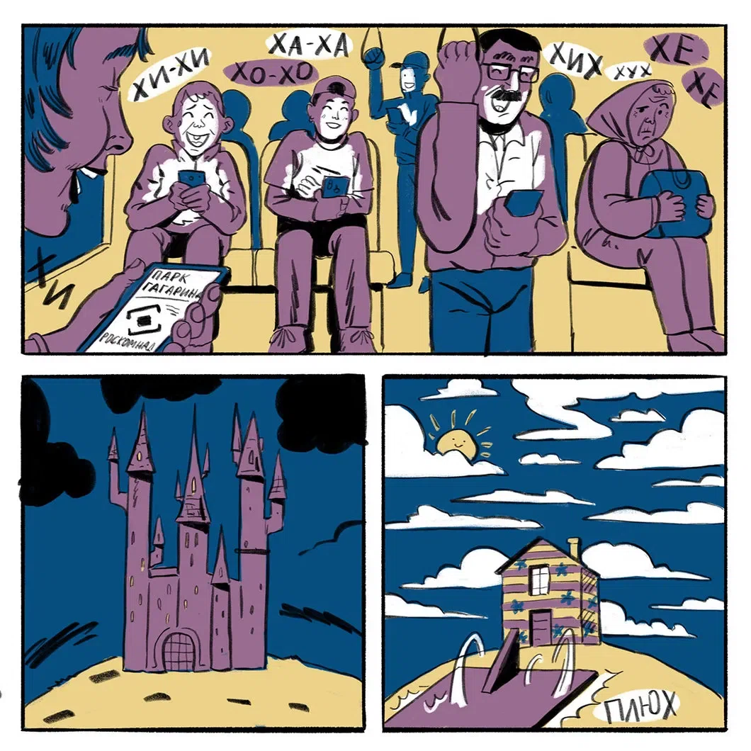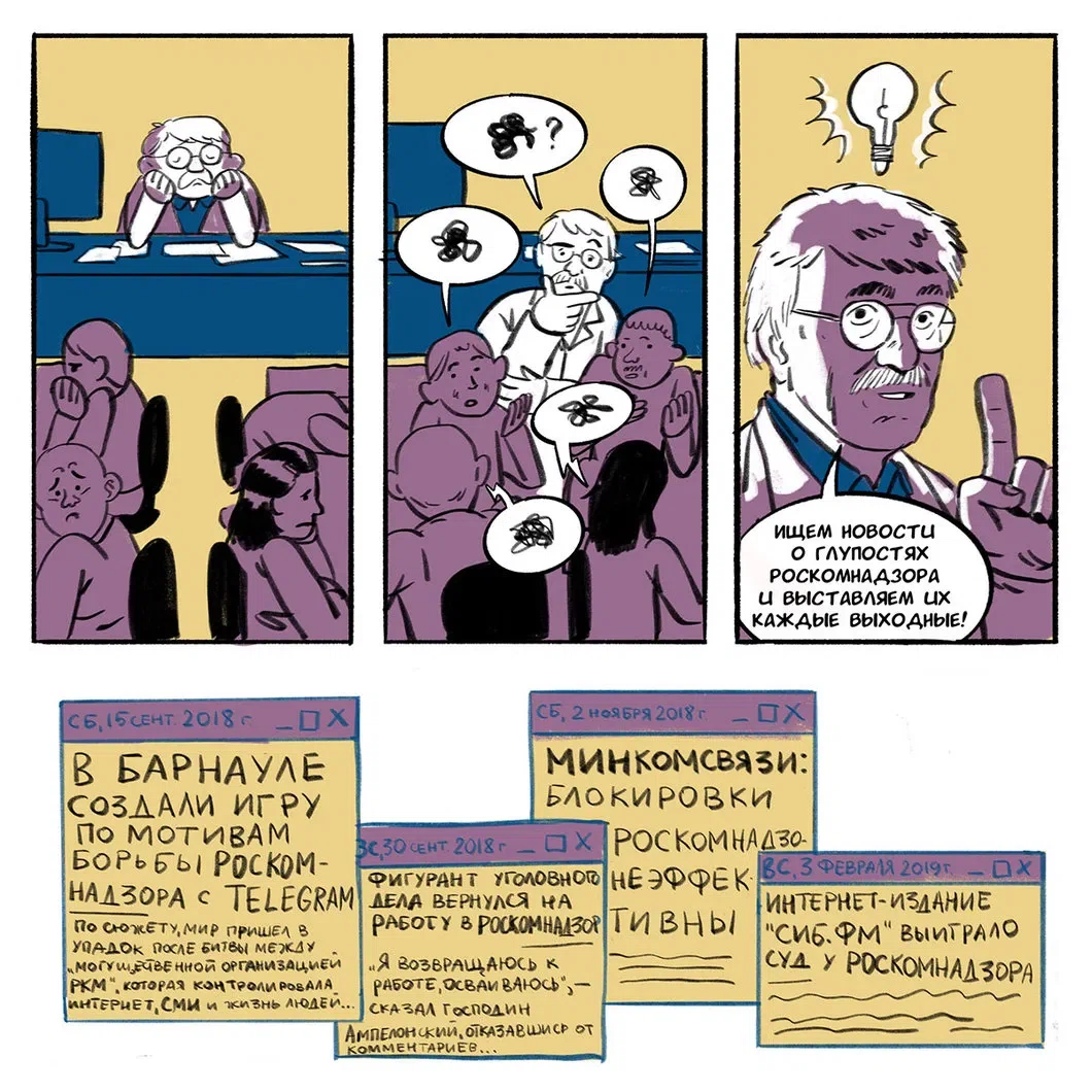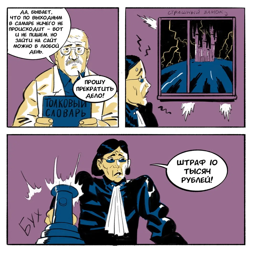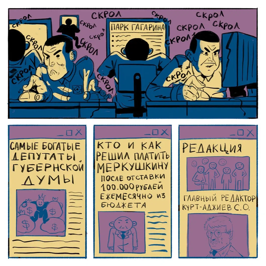 Тяготы региональной журналистики — в комиксе Евгения Киямова для проекта «Кафка-кодекс».