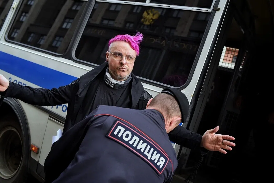 Александр Дельфинов с пикетом у входа в Госдуму. Фото: Виктория Одиссонова / «Новая газета»