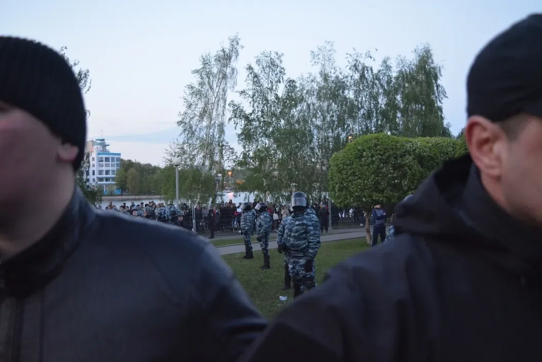 Росгвардия вызывает подкрепление. К 21 часу в сквере появляется около сотни бойцов ОМОНа в бронежилетах и касках. ОМОН встает внутри ограждения и просто наблюдает за ситуацией.
