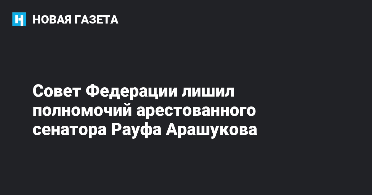Совет Федерации лишил полномочий находящегося в СИЗО сенатора от Карачаево-Черкесии Рауфа Арашукова. Это решение сенаторы приняли единогласно в ходе очередного заседания.