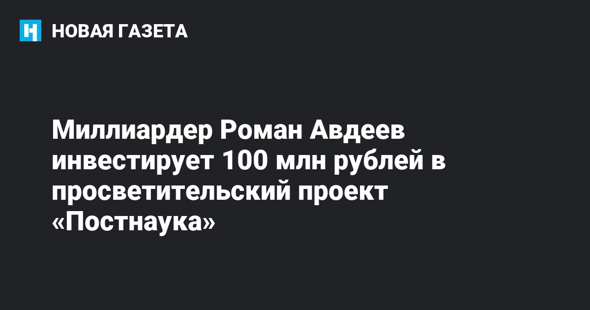 Миллиардер, владелец Московского кредитного банка (МКБ) Роман Авдеев инвестирует 100 млн рублей в развитие издательского дома «Постнаука», сообщают «Ведомости» со ссылкой на представителя бизнесмена.