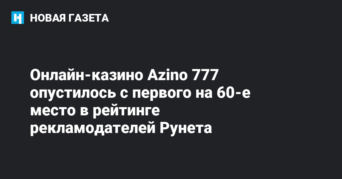 Запрещенное в России онлайн-казино Azino 777 по подсчетам за первый квартал 2019 года заняло 60-е место в списке крупнейших заказчиков видеорекламы на десктопах, ранее оно занимало первое место. Об этом свидетельствуют данные компании Mediascope, которые приводит РБК.