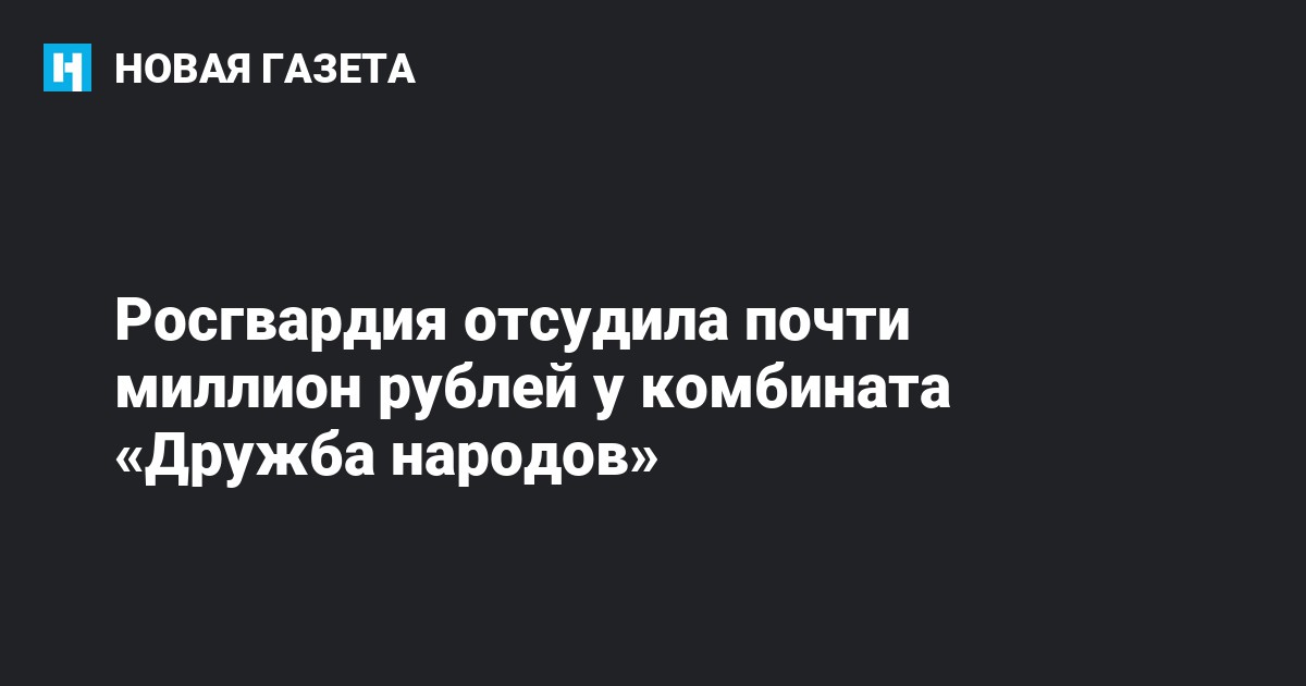 Арбитражный суд Москвы взыскал в пользу Росгвардии 938 тысяч рублей с ее единственного поставщика продуктов — крымского мясокомбината «Дружба народов». Об этом говорится в судебных материалах, на которые обратило внимание «МБХ медиа».