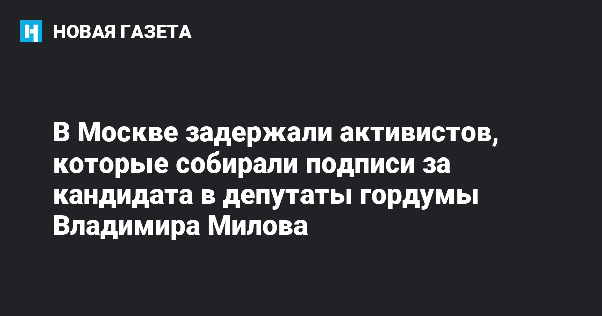 В Москве задержали активистов Сергея Румянцева и Евгению Федулову, которые собирали подписи за кандидата в депутаты Мосгордумы Владимира Милова. Об этом «ОВД-Инфо» сообщила волонтер калининградского штаба Алексея Навального Мария Петухова.