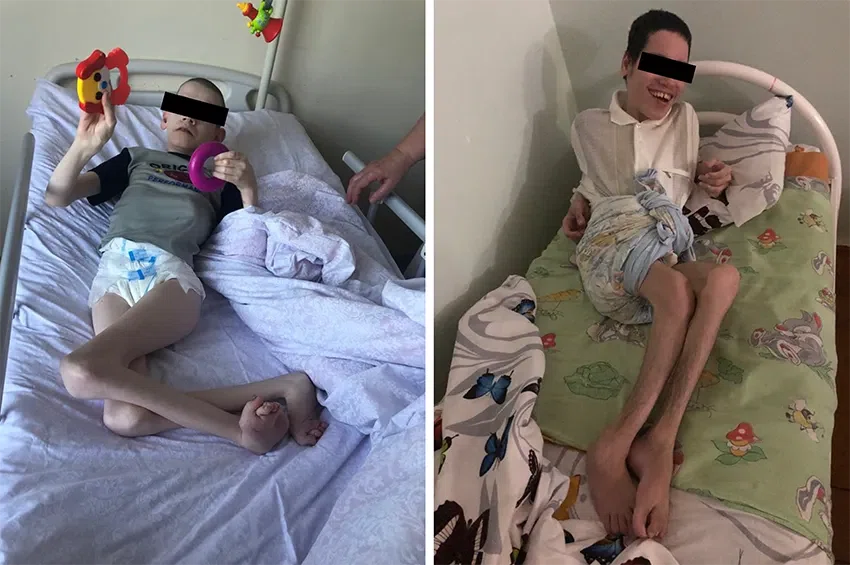 И диетологов, кстати, в ПНИ нет. А пролежни случаются не только тогда, когда не переворачивают, а тогда, когда недокармливают. Посмотрите на этих «недетей» — возраст этих мальчиков 23–24 года. Вот эти фотографии сделаны уже в медицинских организациях, оказывающих паллиативную помощь, где мы вынужденно занимаемся не своим делом, — мы их выхаживаем и отправляем обратно.