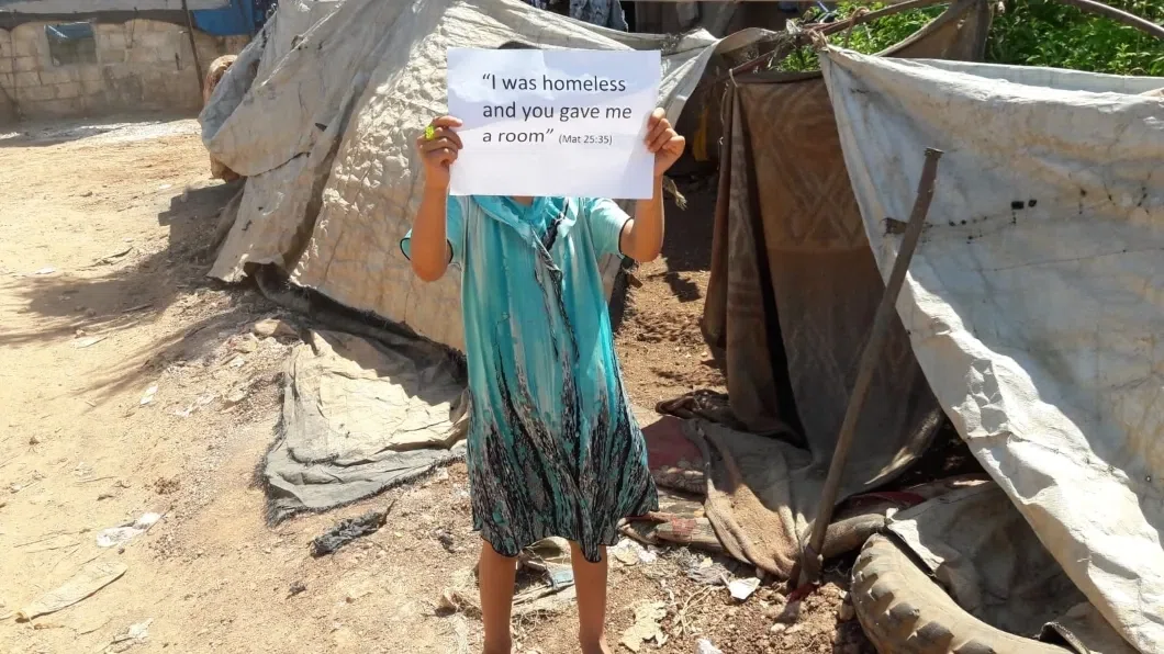 Мужчины, женщины и дети, врачи и активисты, коренные жители Идлибской провинции и бежавшие в Идлиб от войны сирийцы, живущие в жутких условиях в самодельных палаточных лагерях, сфотографировались с плакатами, на которых — цитаты из Евангелия от Матвея: