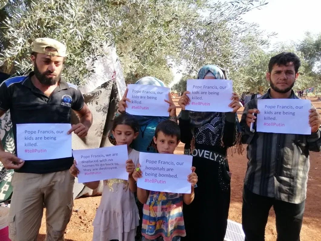 Но почему тогда на плакатах, которые держат сирийцы из Идлиба, нет хештегов#tellAssad или#tellKhamenei или#tellTrump? Не только потому, что 4 июля папа Римский встречается с президентом Путиным.