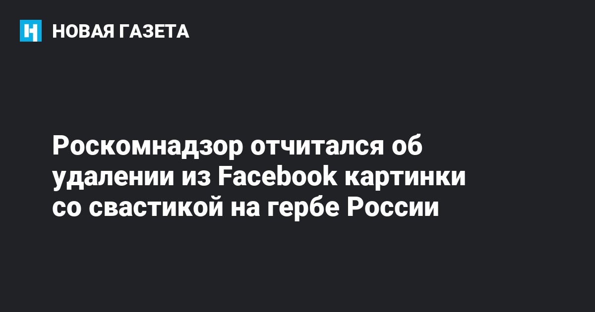 Роскомнадзор сообщил, что соцсеть Facebook удалила картинку, на которой на фоне герба России было изображение свастики. Об этом говорится на сайте ведомства.