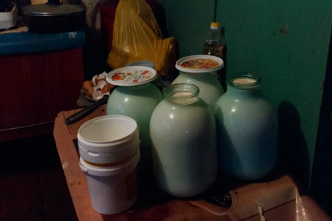 Здесь же на веранде хранятся трехлитровые банки с молоком, некоторые из них еще теплые. Шура продает такую трехлитровку по 180 рублей. В основном берут дачники, местные пьют магазинное, которое дешевле.